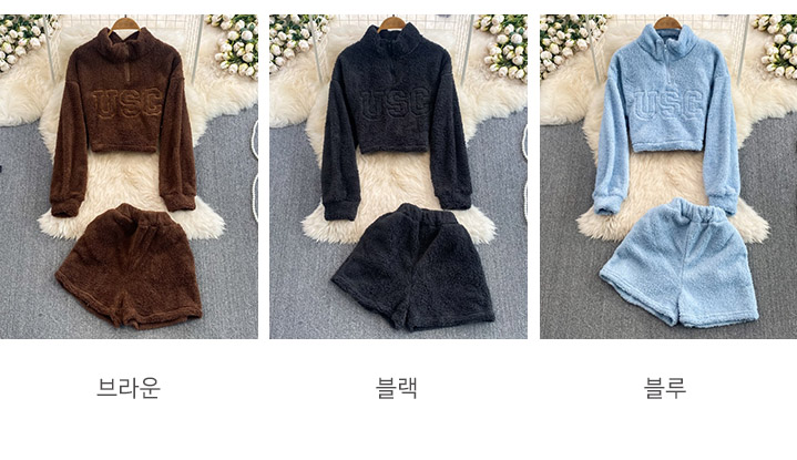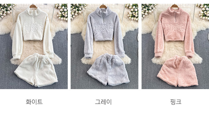 Set - 리노 보송보송 털털 집업 트레이닝 세트