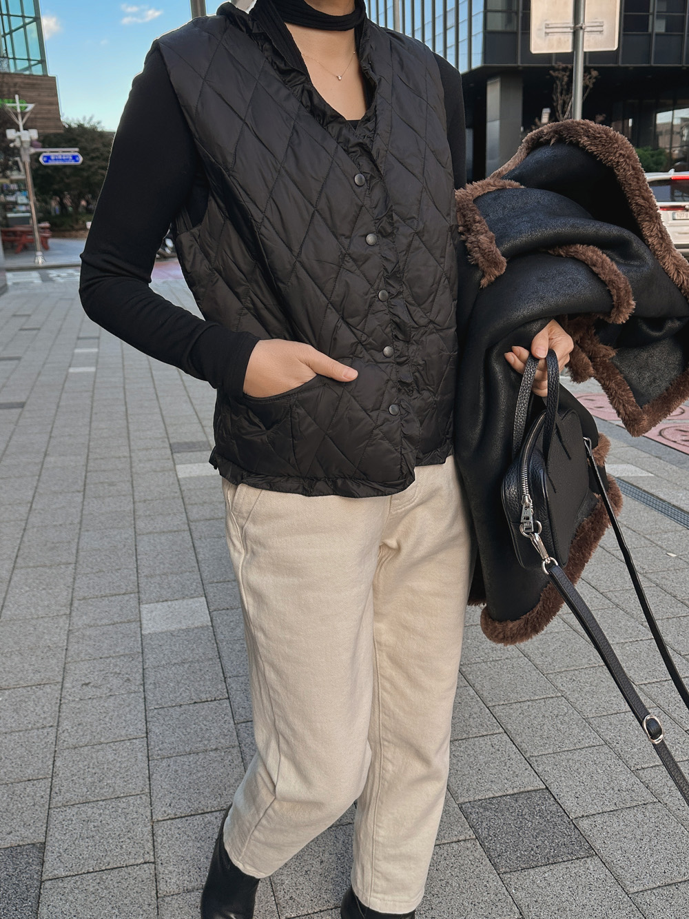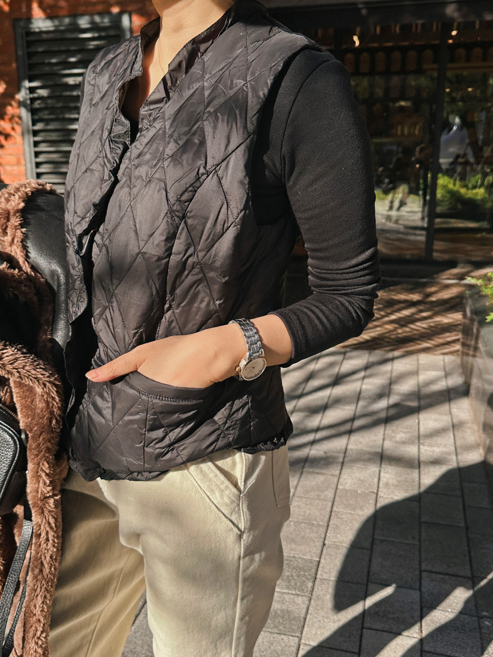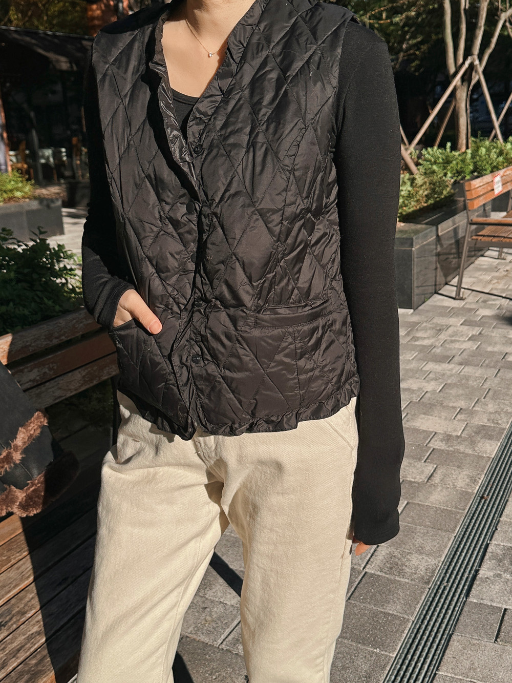 #프릴디테일 큍팅 패딩조끼