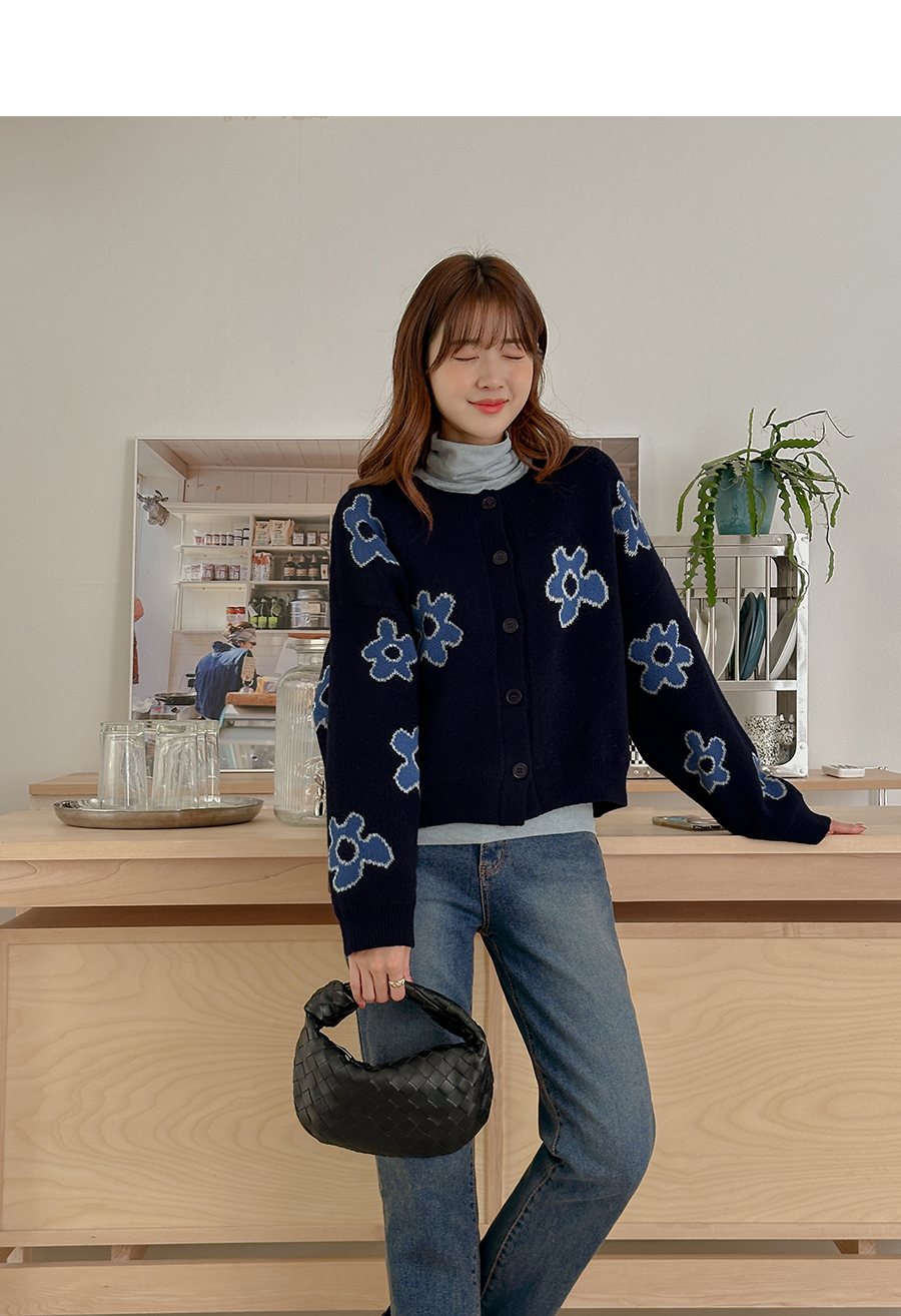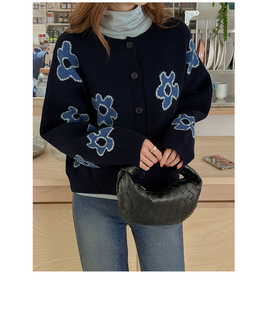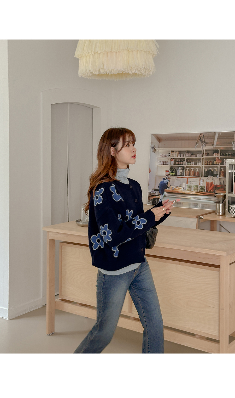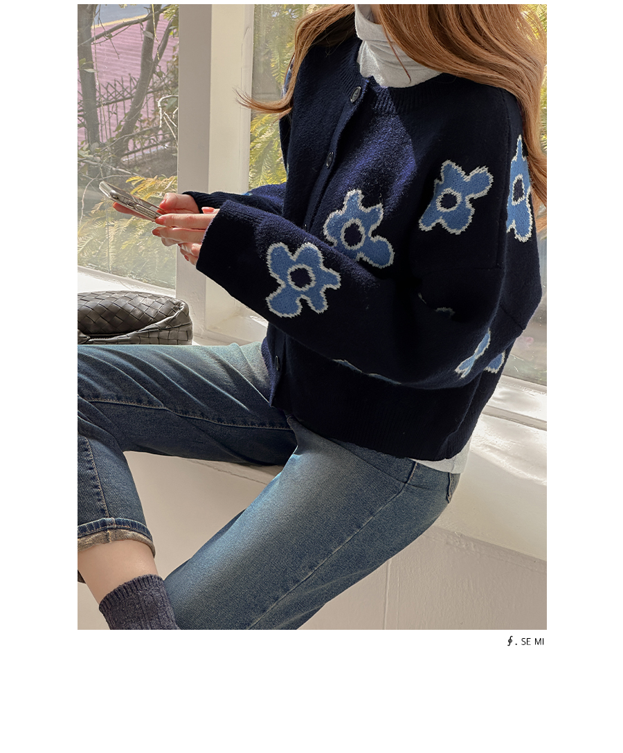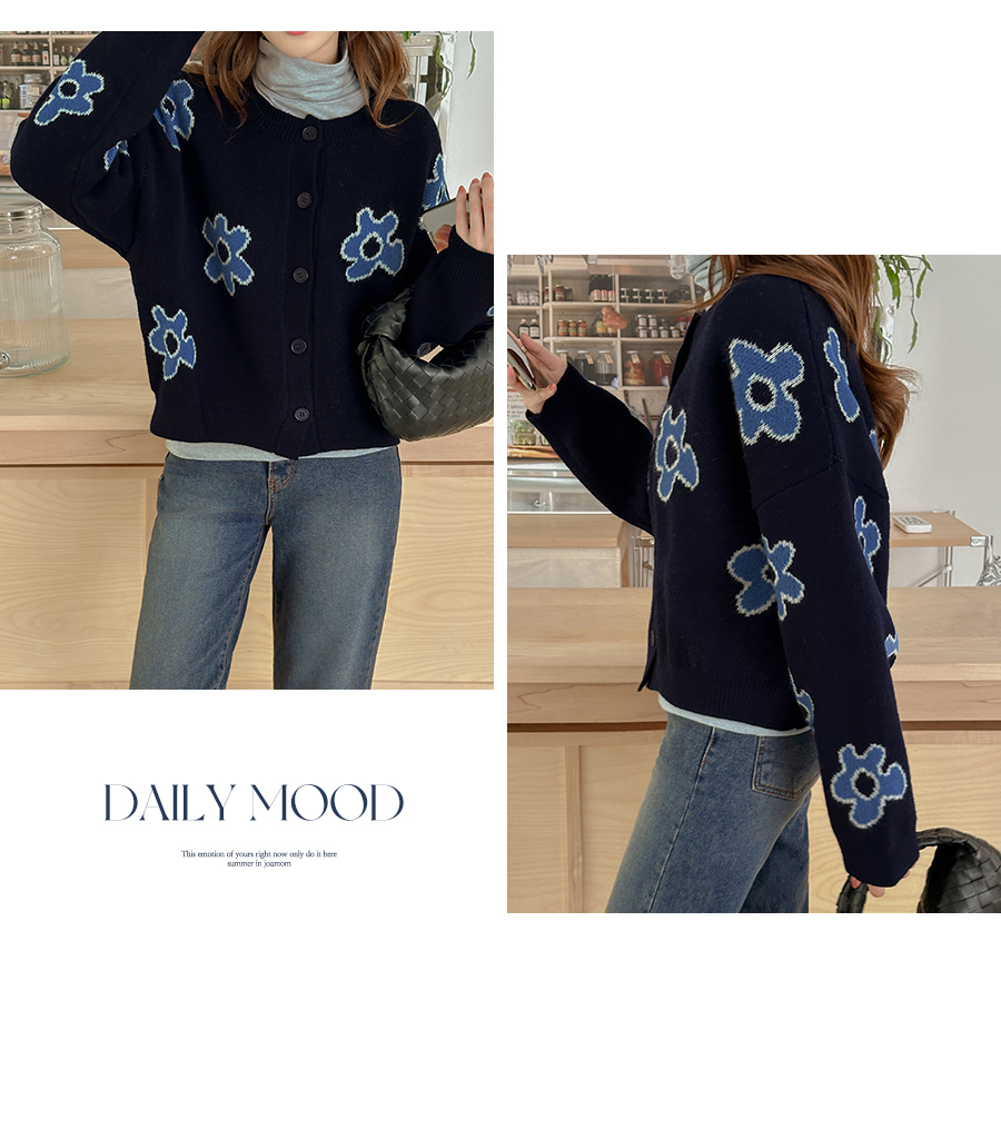 블루 플라워가 에스닉 한 듯 차분한 네이비 컬러와