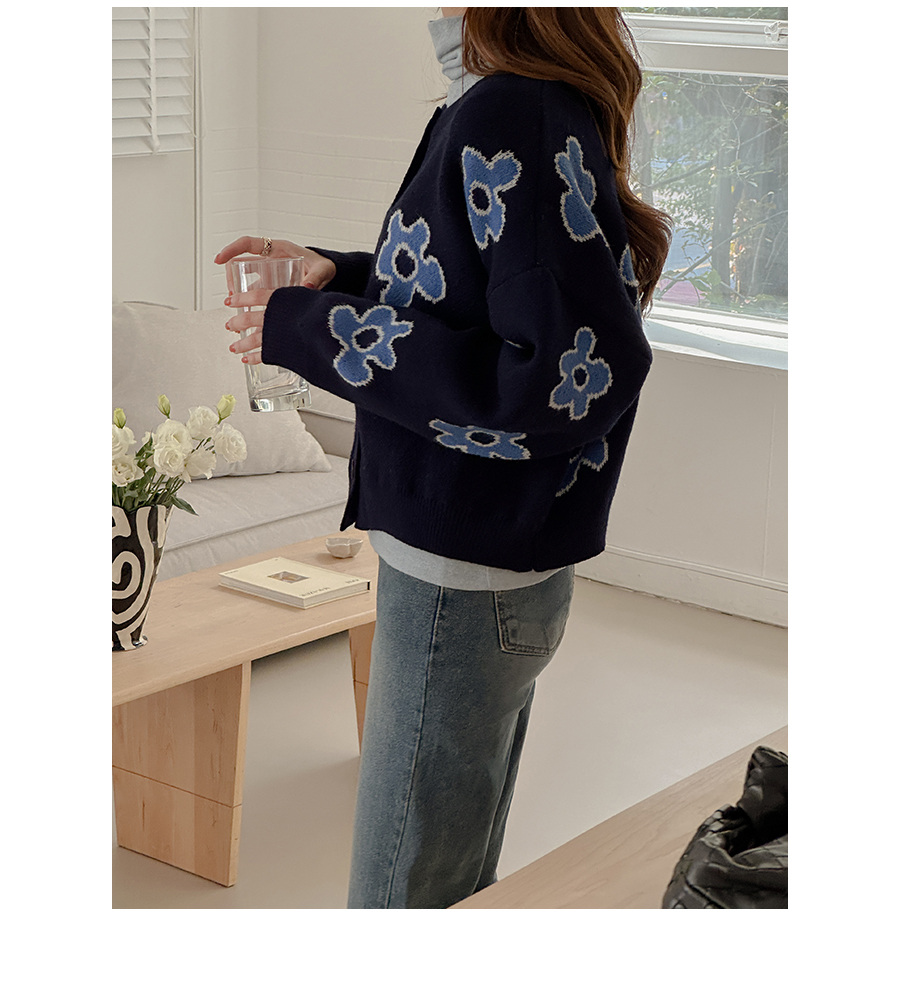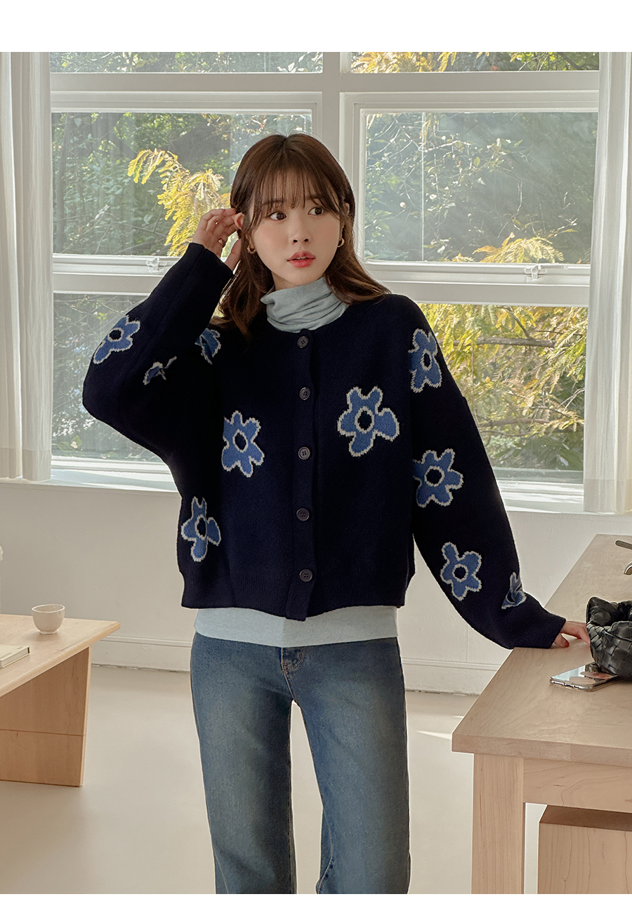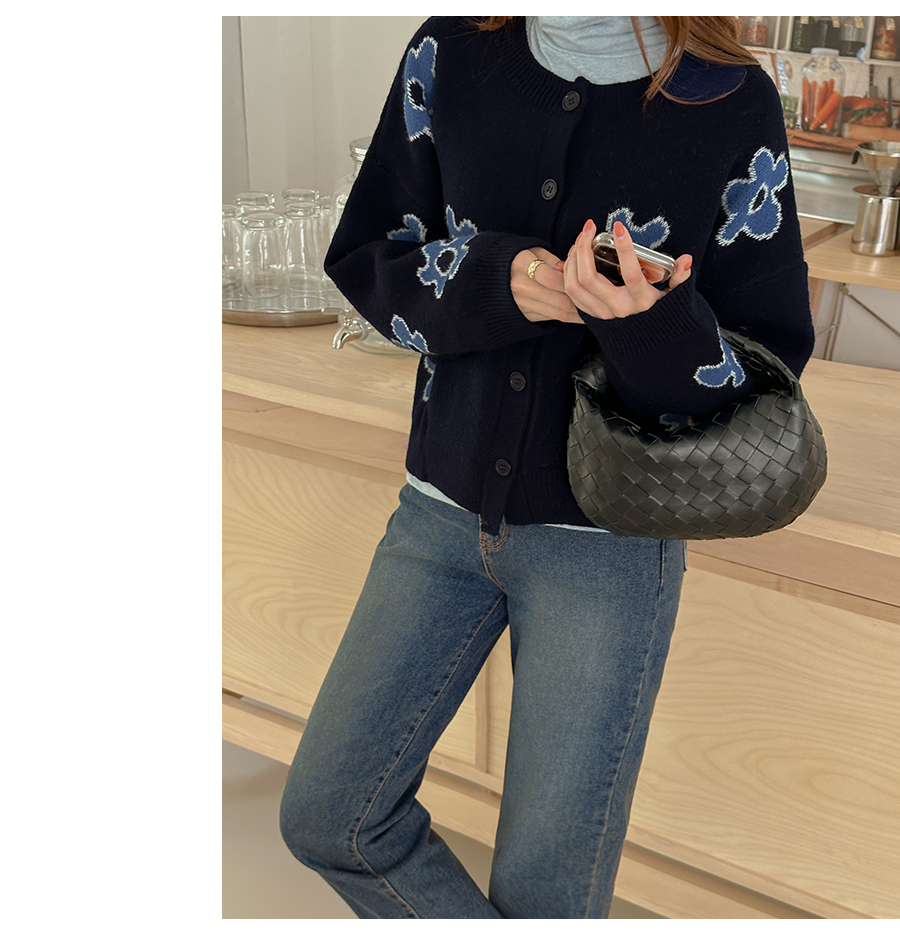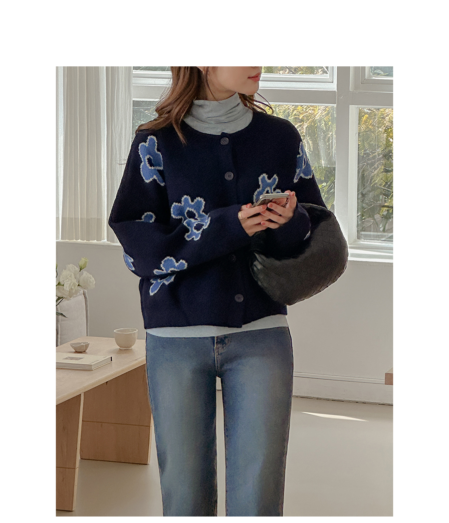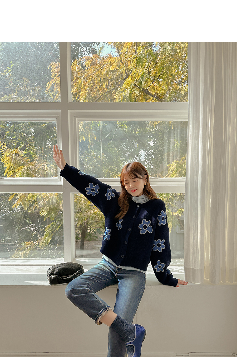블루 플라워가 에스닉 한 듯 차분한 네이비 컬러와
