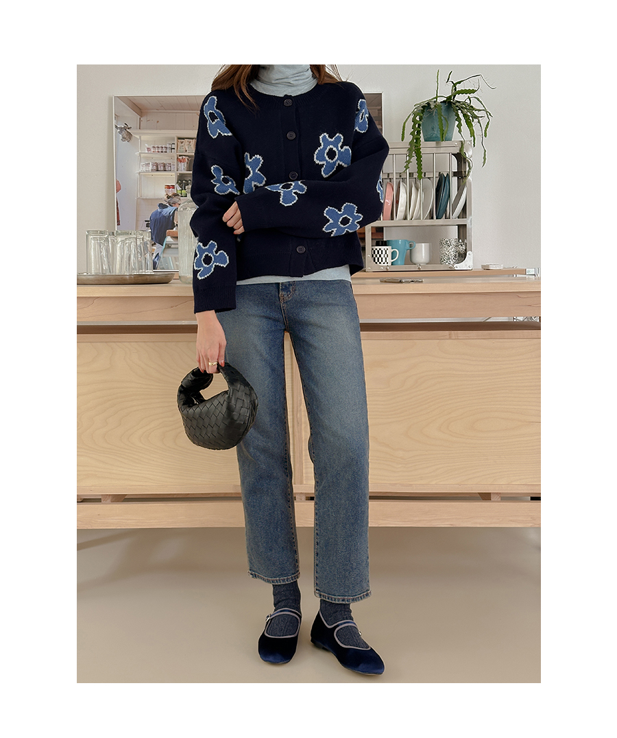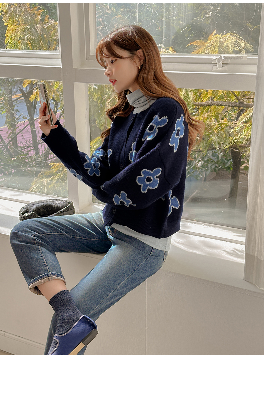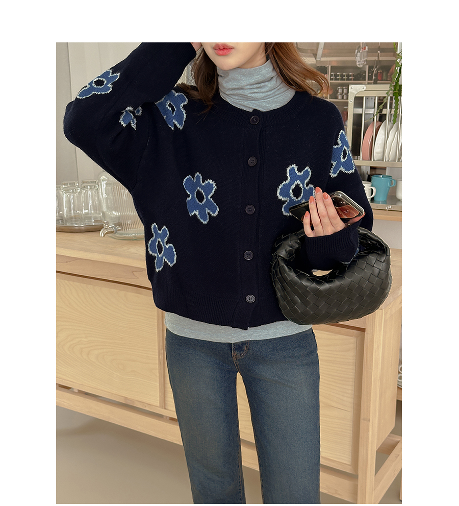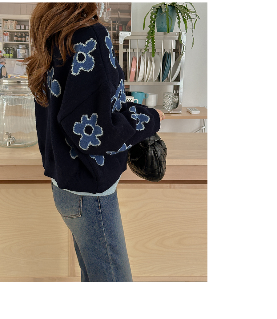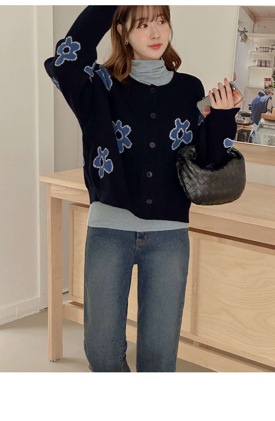 블루 플라워가 에스닉 한 듯 차분한 네이비 컬러와