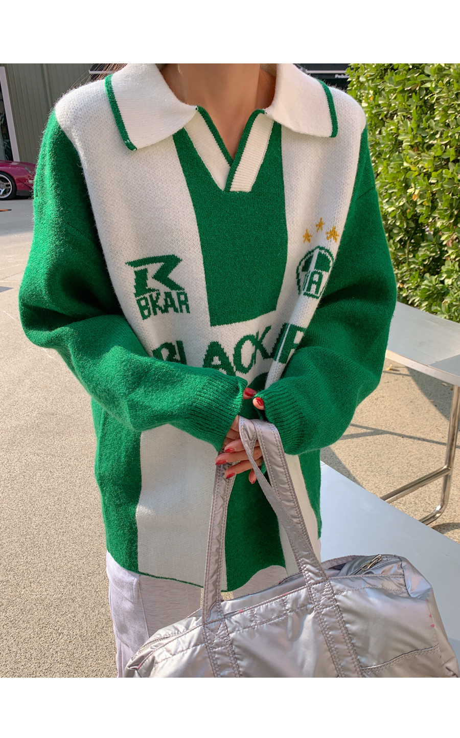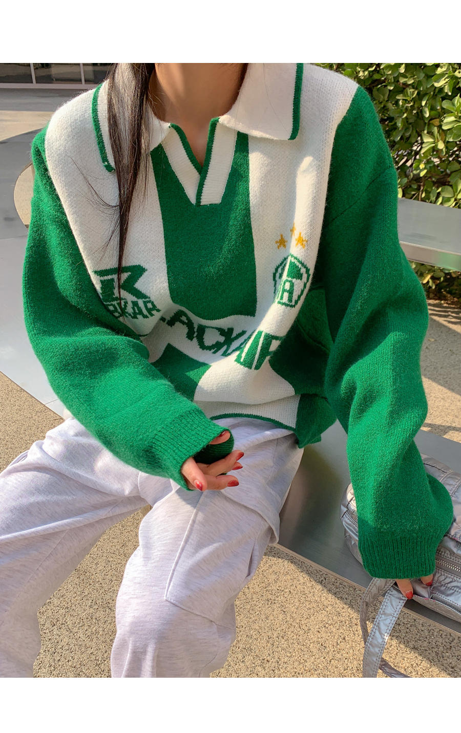 Football color matching wool collar knit