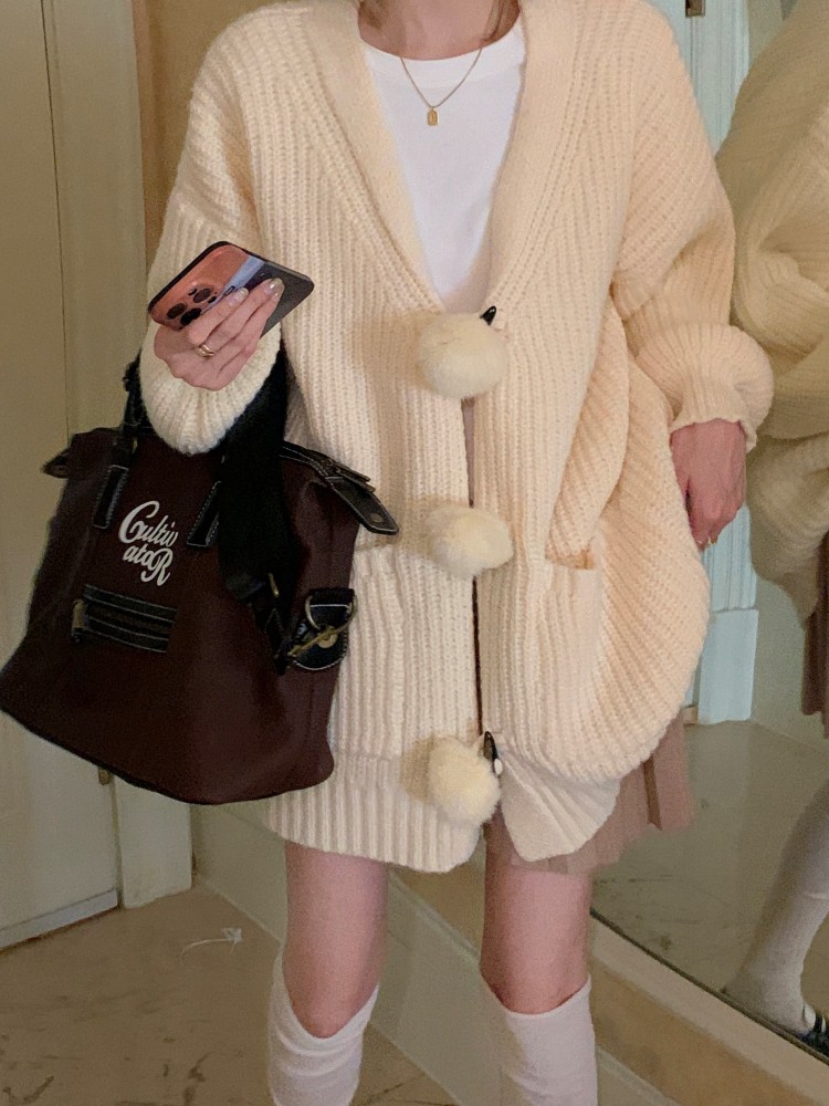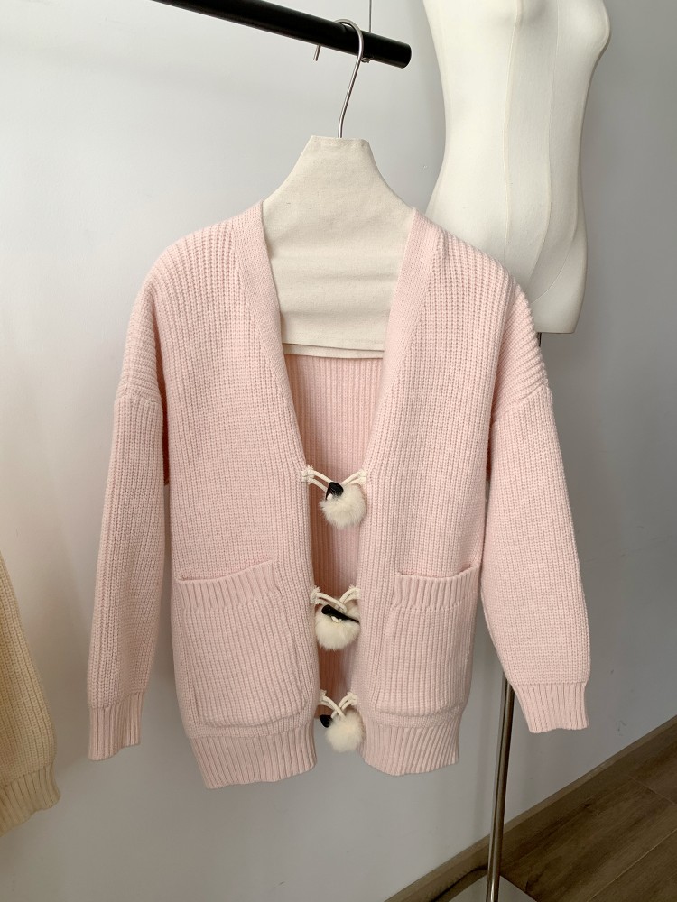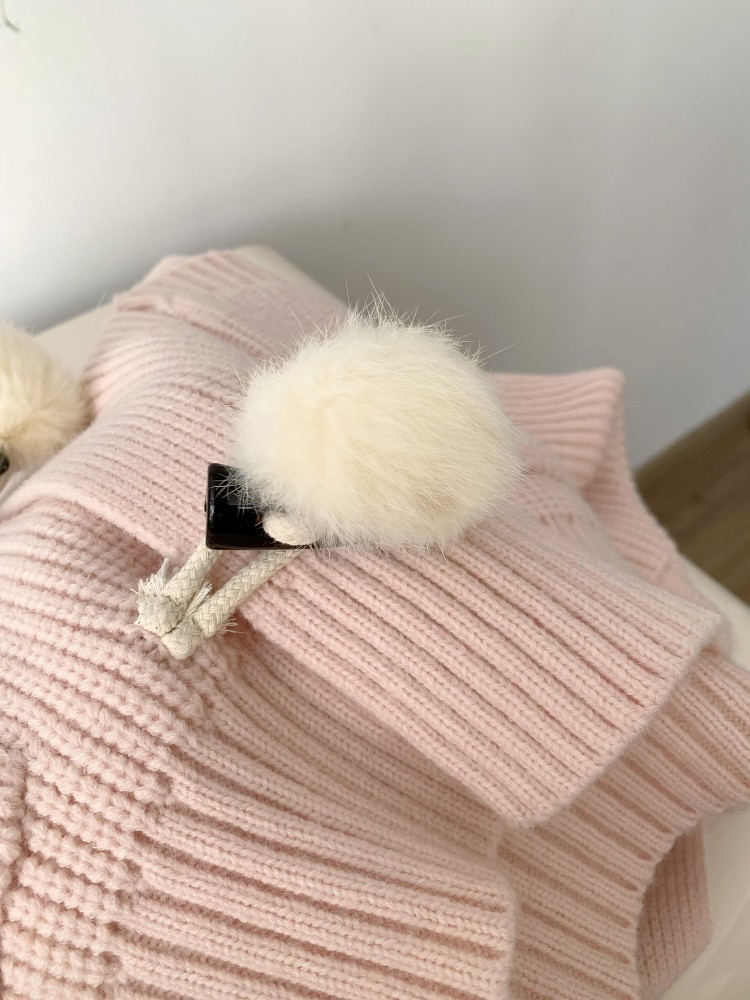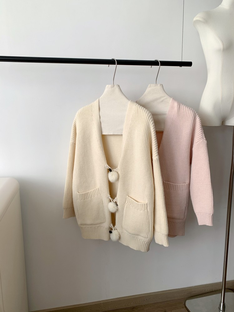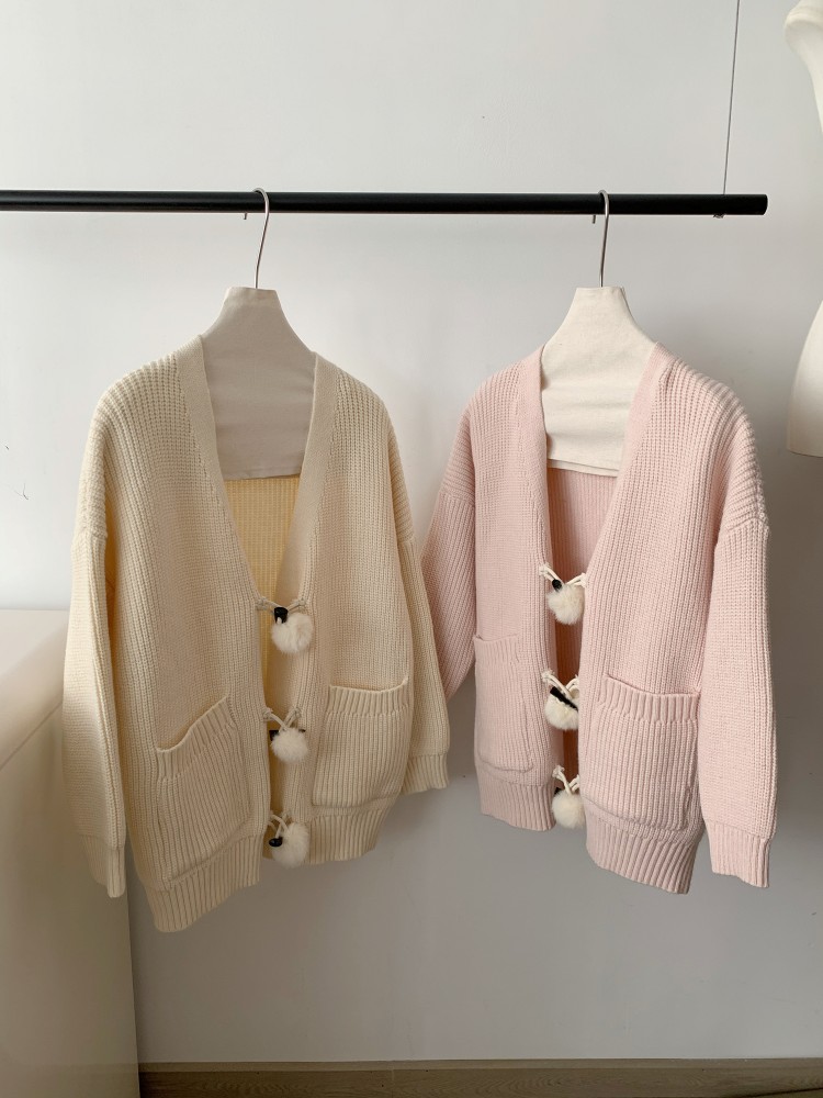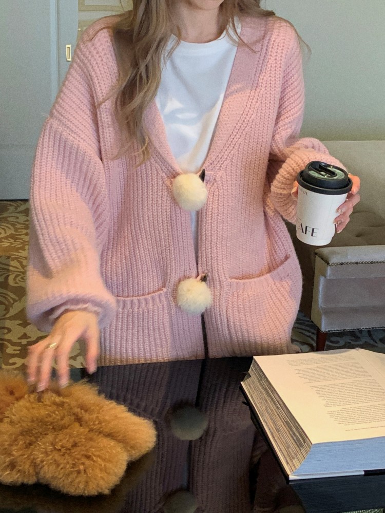 3 rabbit tail pom pom cozy knit cardigan