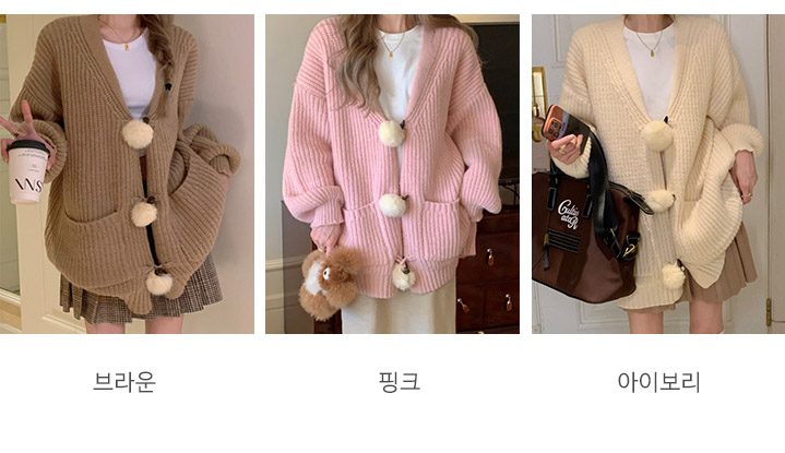 토끼꼬리 3개 폼폼 포근 니트 가디건