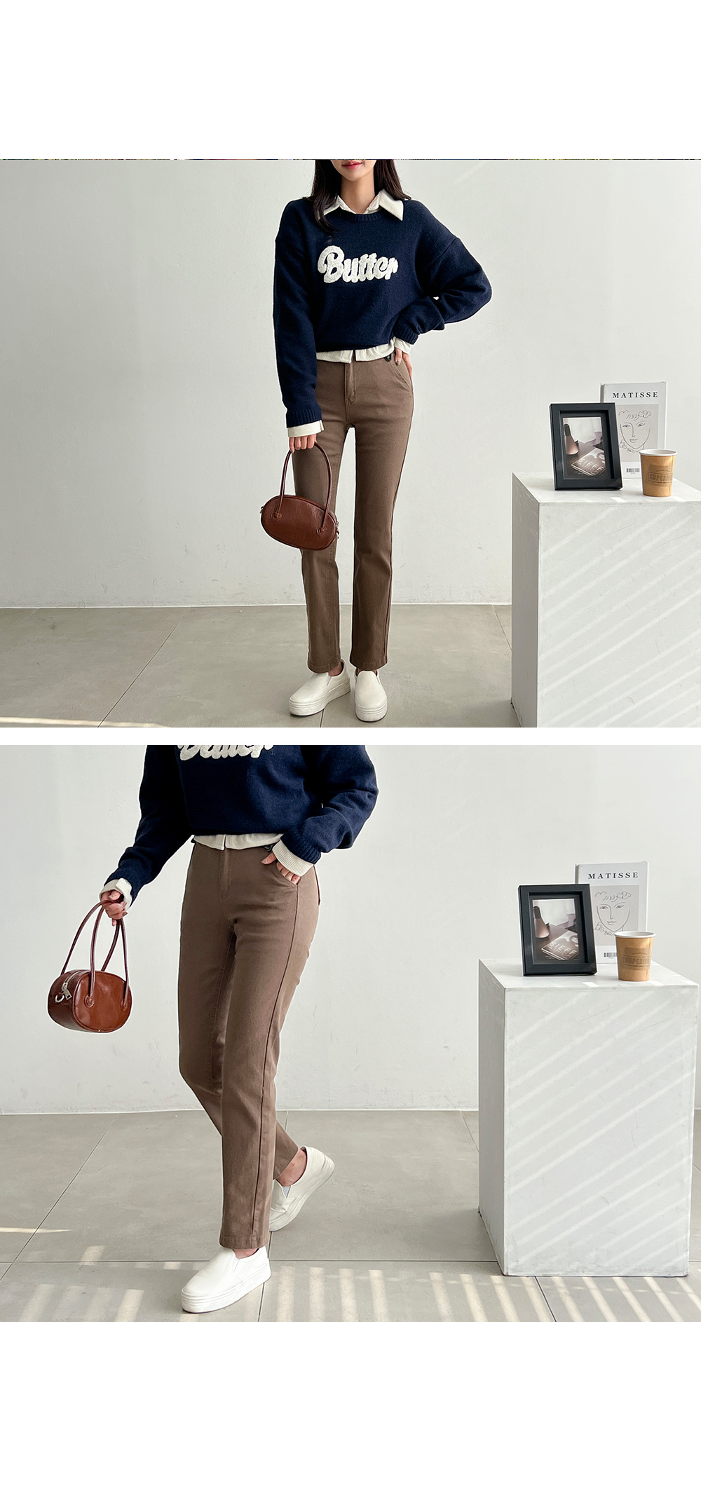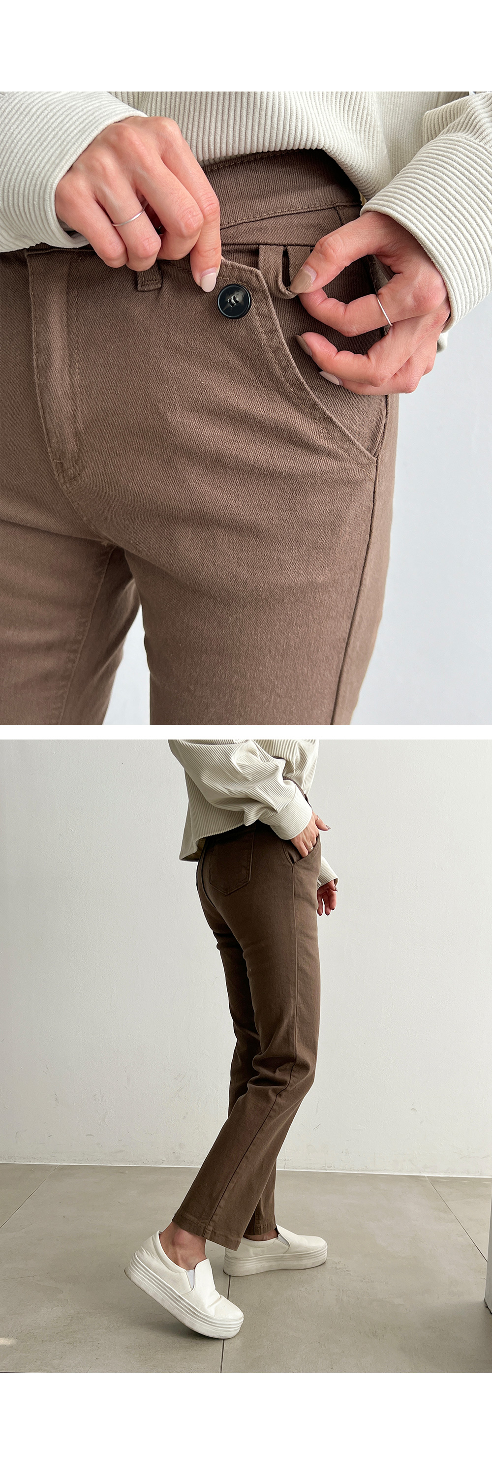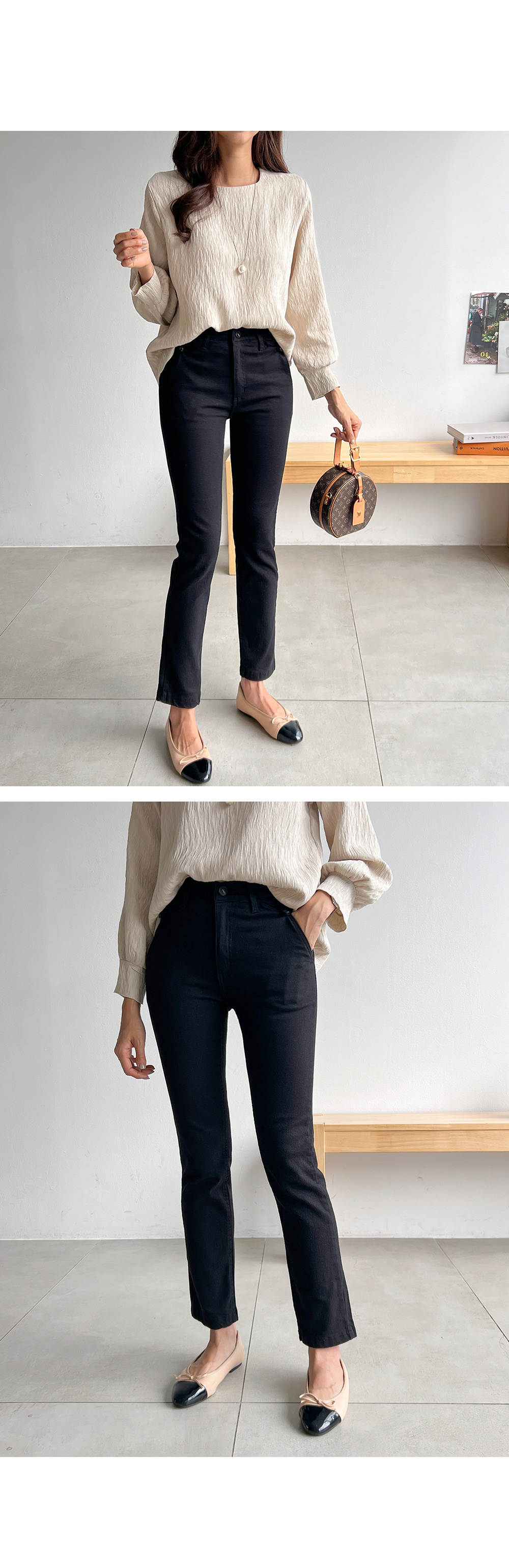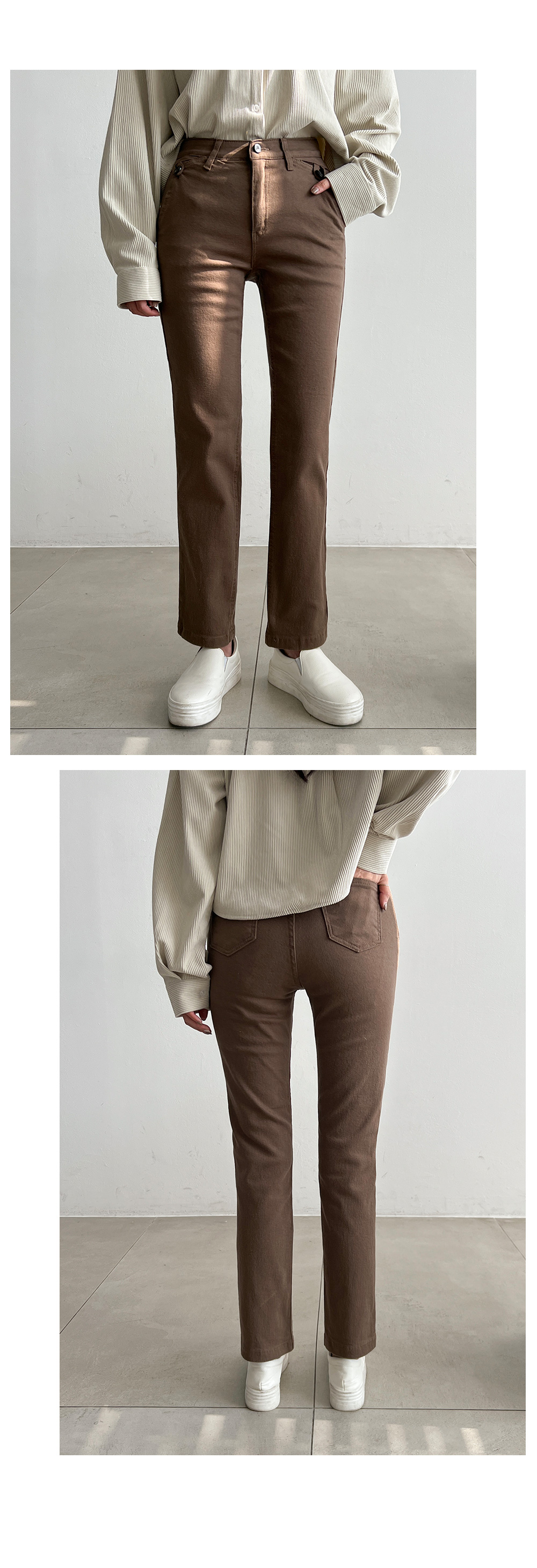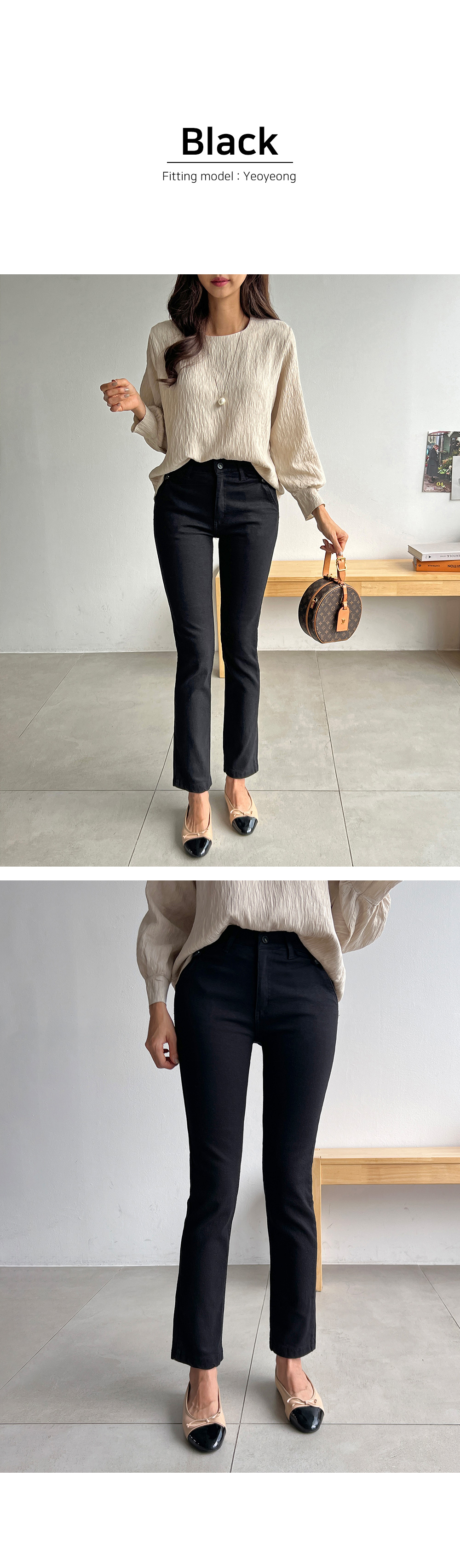 슬림한 핏과 적당한 길이감으로 레그라인을 돋보이게 해주며