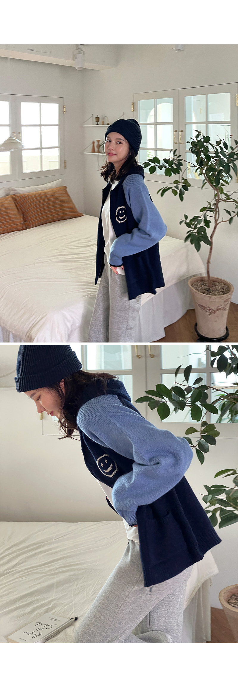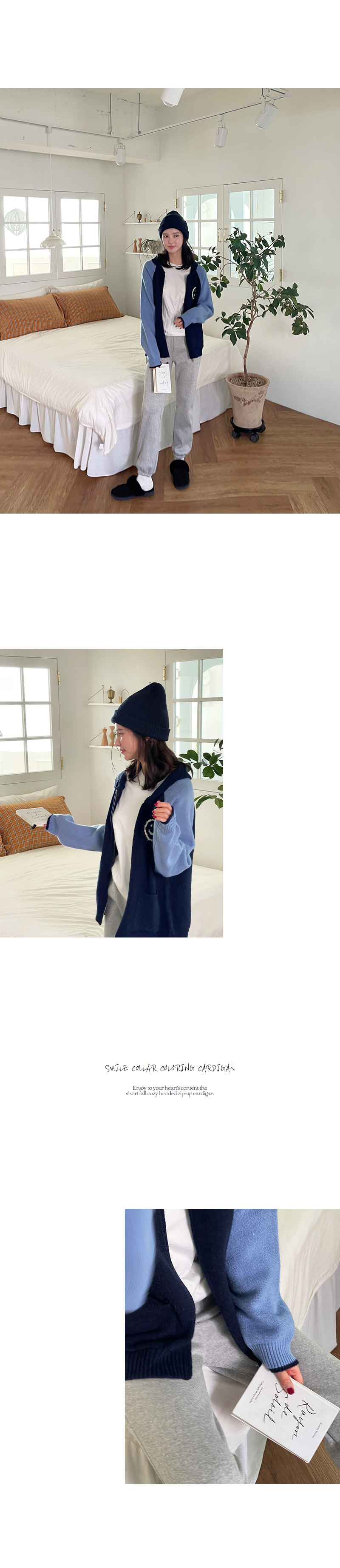 스마일 카라 배색 가디건!