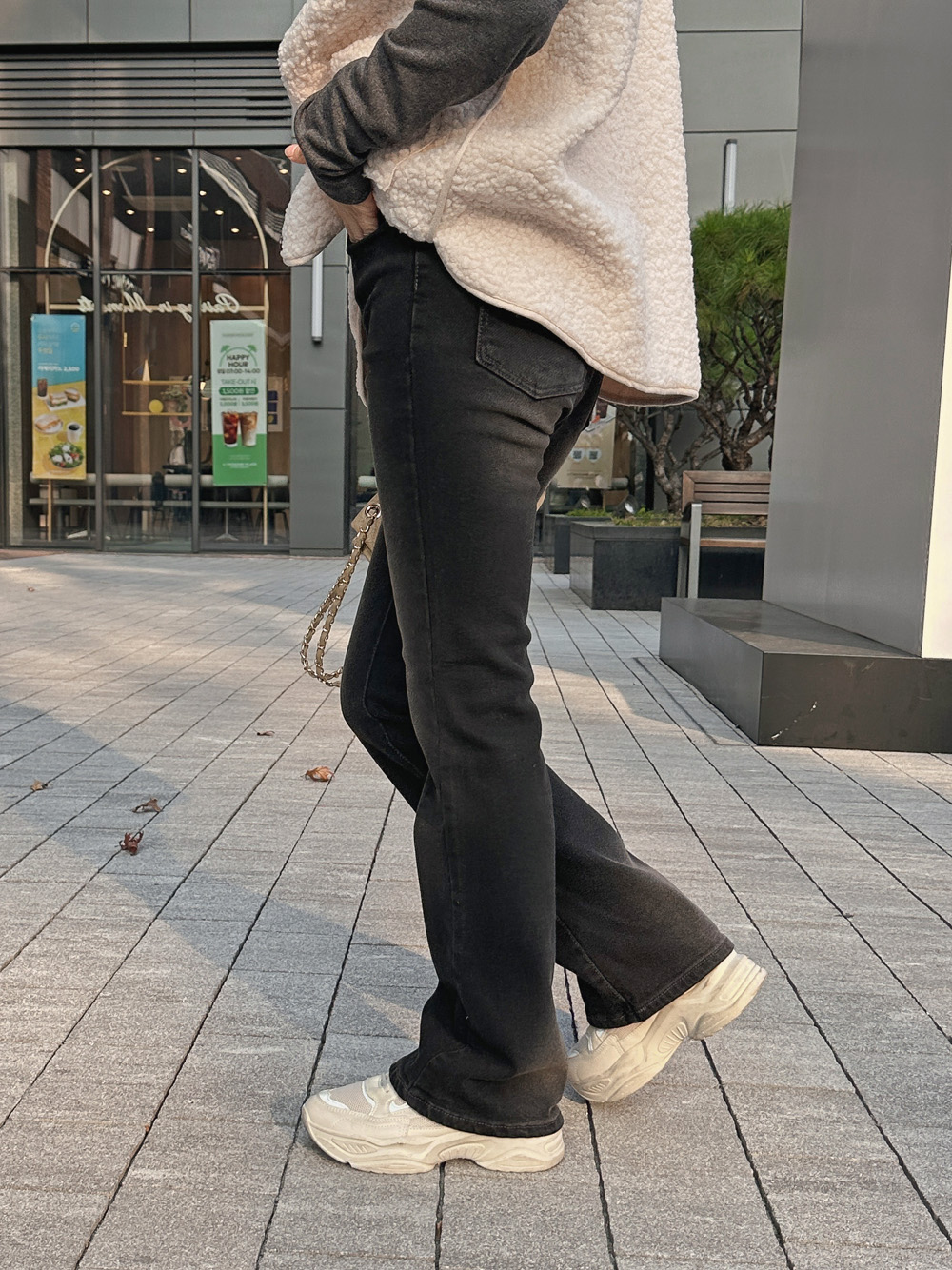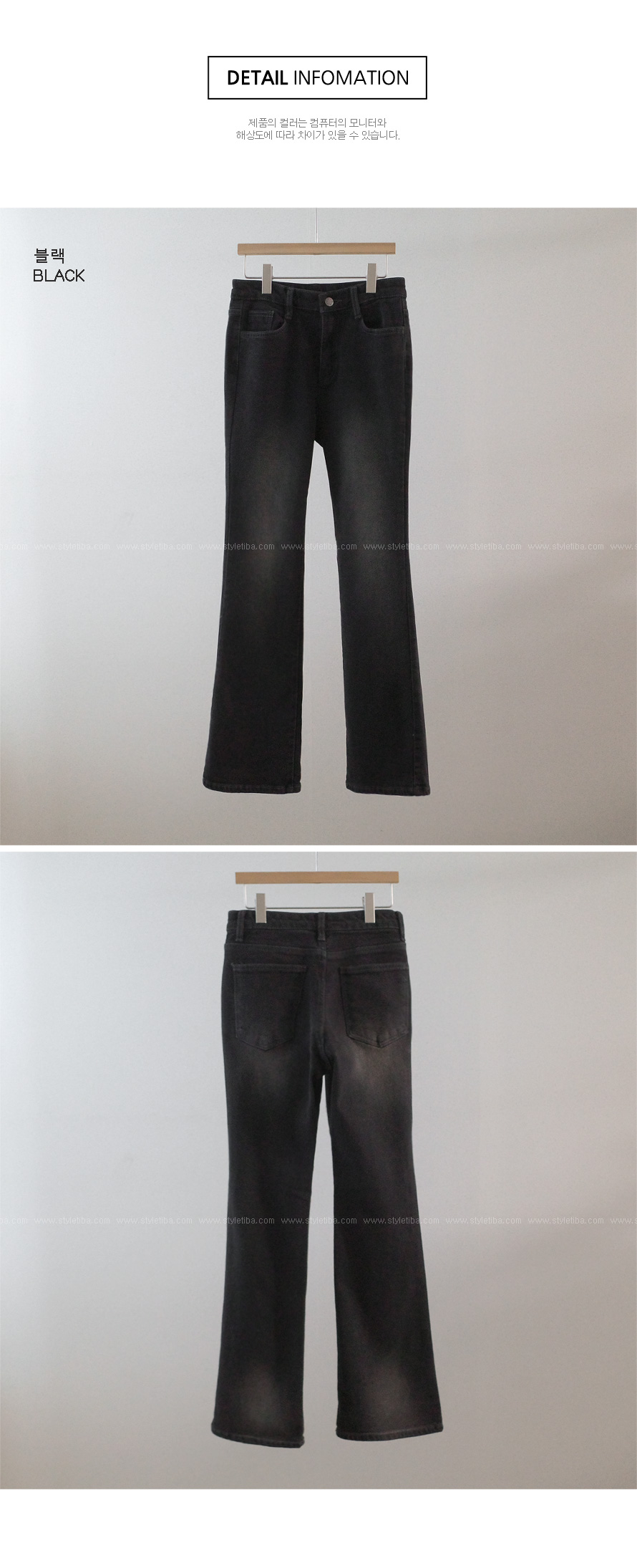 Black cat washing brushed banding bootcut denim_S, M, L, XL-1 color, trendy and stylish - slender long legs automatic photoshop - warm brushed, waist hidden banding and spandex - the fit is stylish and great! - Style T Bar