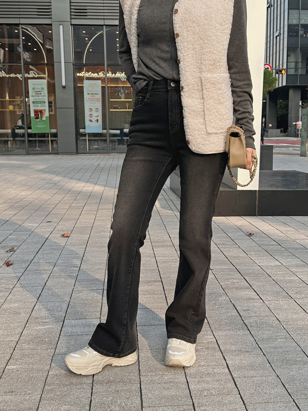 #블랙캣워싱 기모밴딩 부츠컷데님